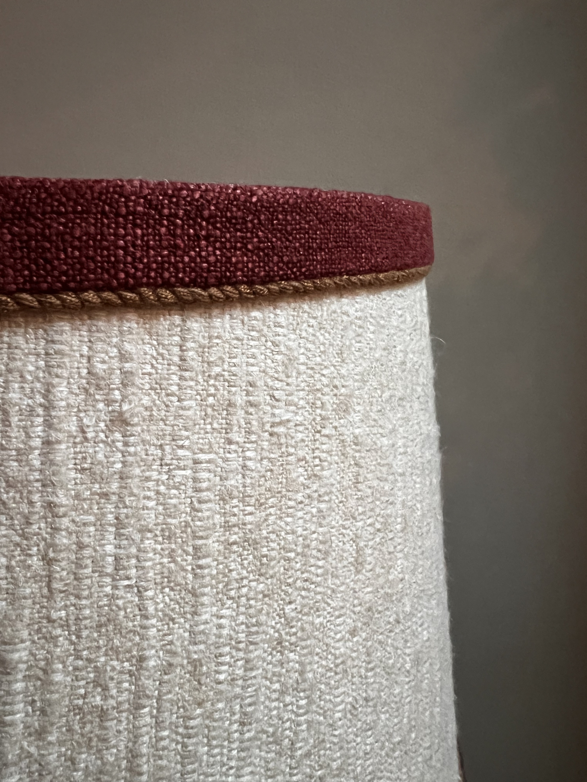 Handmade lampshade in linen with gold lining inside Upper diameter: 22cm Lower diameter: 55cm Slanted side: 27cm
